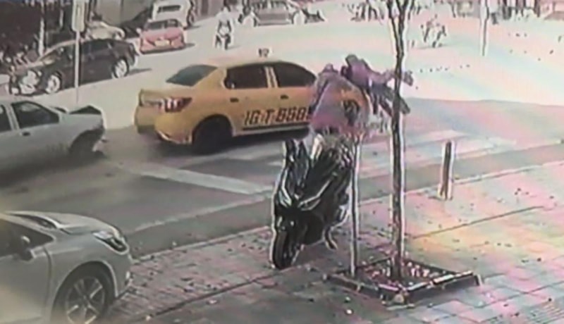 Çarpmanın etkisiyle hızlanan ticari taksi, yaya geçidinden geçmekte olan anne Merve A. (29) ve bebek arabasındaki 2 yaşındaki Miraç A.'ya çarptı.