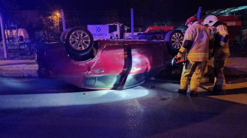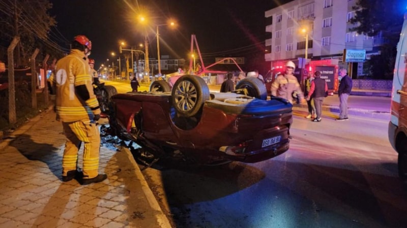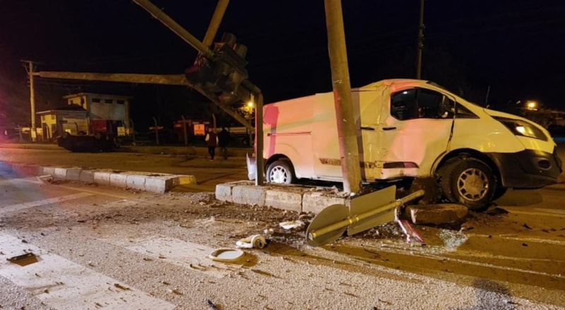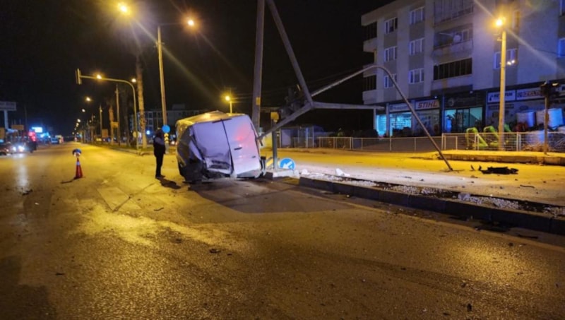 Savrulan otomobil takla atarken, minibüs ise sinyalizasyon direğine çarptı.