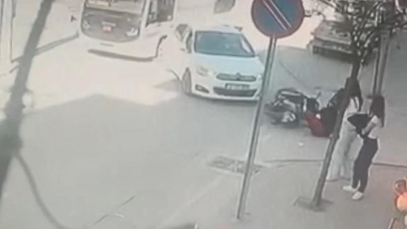 Kaza anı bir işyerinin güvenlik kamerası tarafından kaydedildi.
