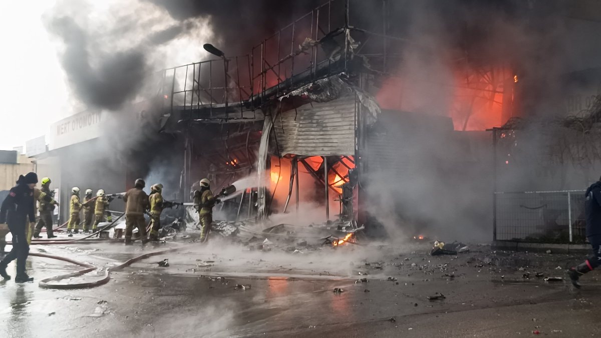 Zaman zaman patlamaların yaşandığı yangına, itfaiye ekiplerinin müdahalesi sürüyor.