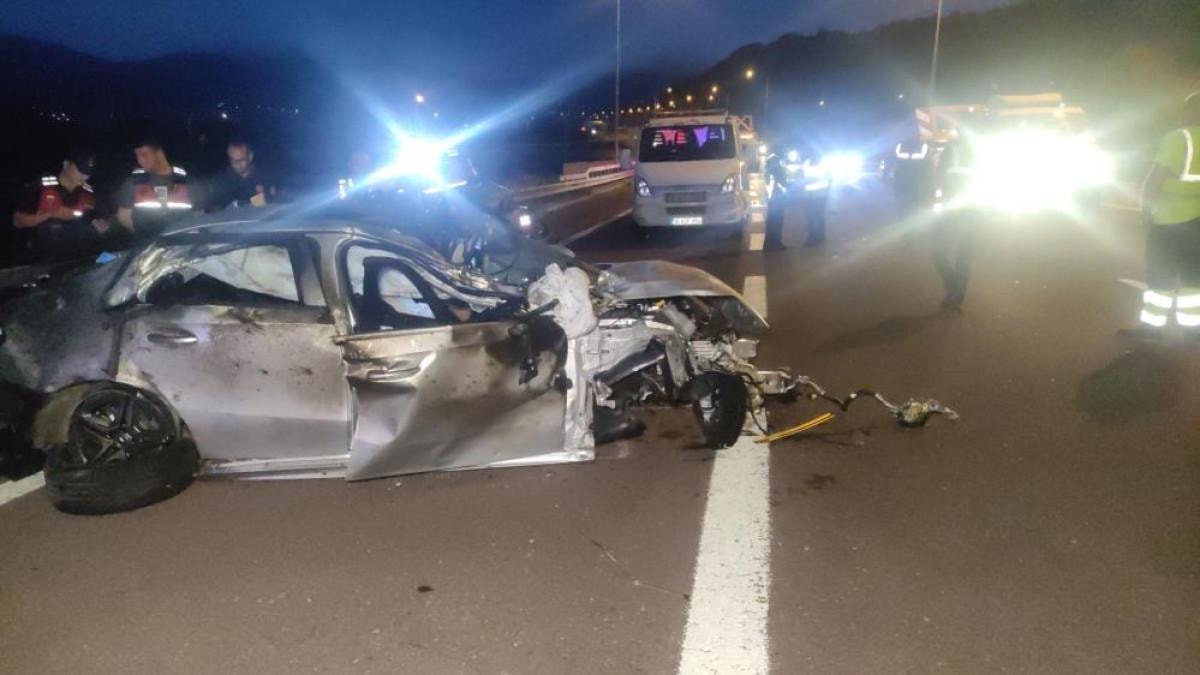 Kaza sonrasında bariyerlerde sıkışan otomobil lastiği ise kazanın şiddetini gözler önüne serdi.