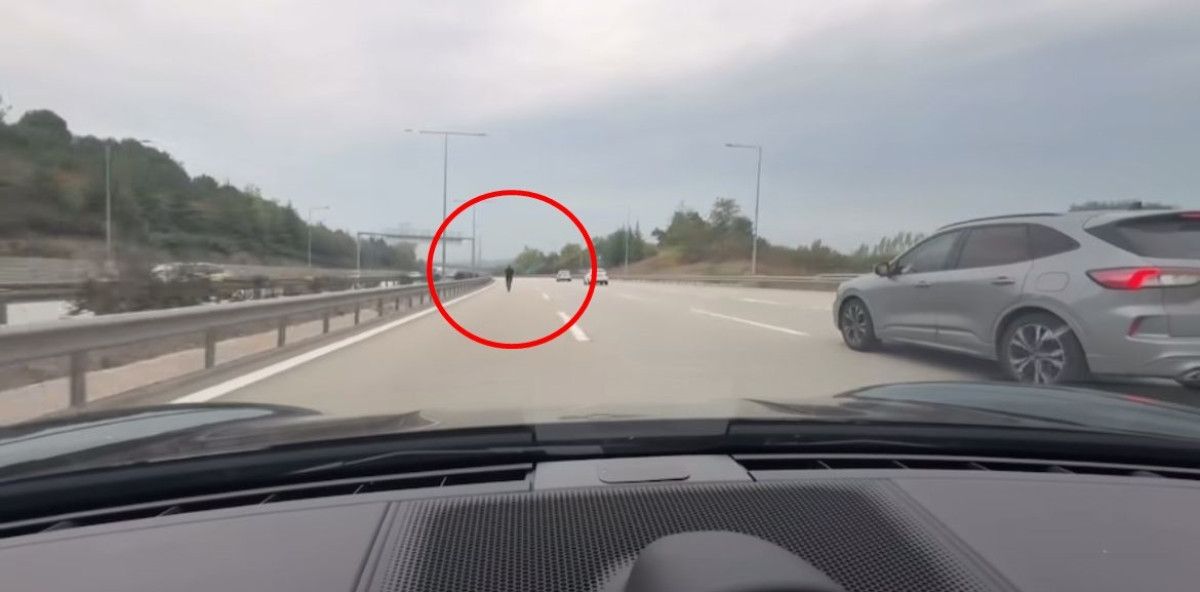 Bursa’nın Osmangazi ilçesi Demirtaş Viyadüğü üzerinde, İzmir istikametine seyir halinde olan bir otomobil sürücüsü, yolun ortasında yürüyen bir yayayı son anda fark etti.