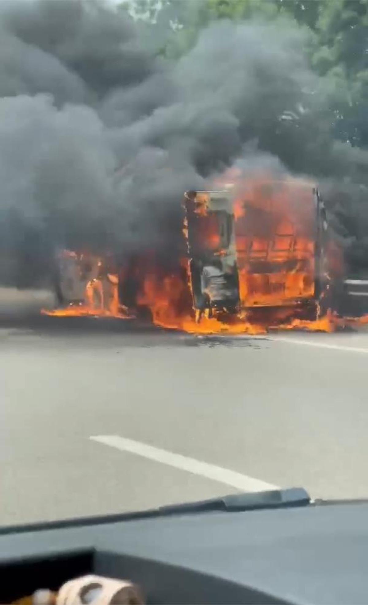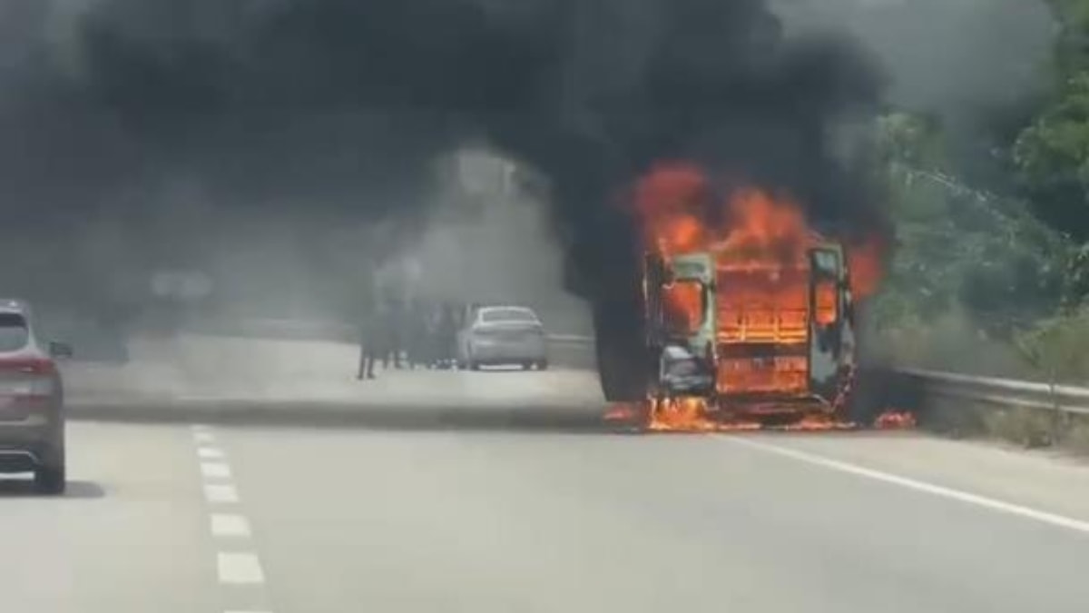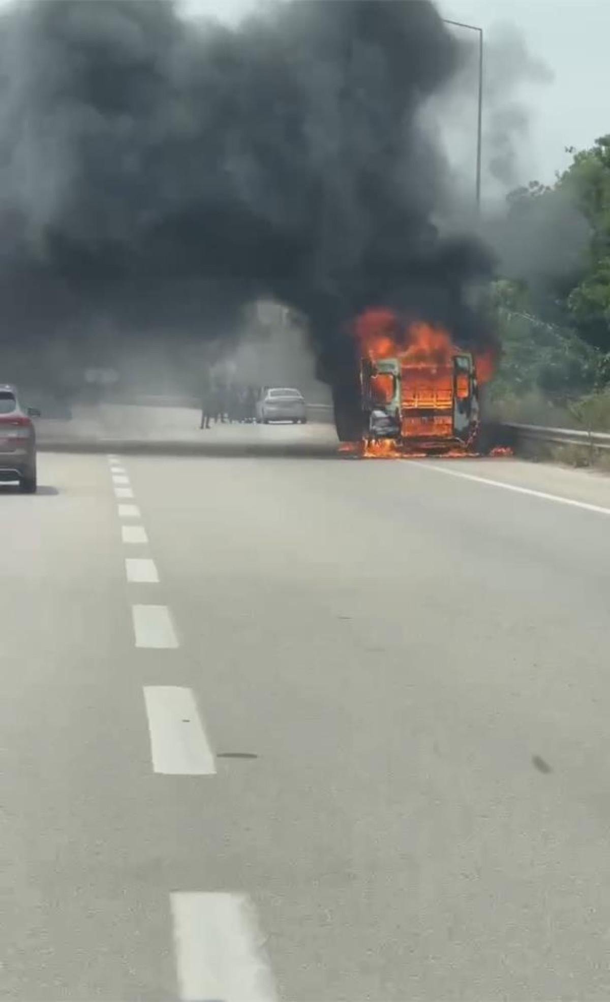 Bursa'nın merkez Nilüfer ilçesi Gebze-Orhangazi-İzmir otoyolunda servis minibüsü, seyir halindeyken bir anda alev aldı.