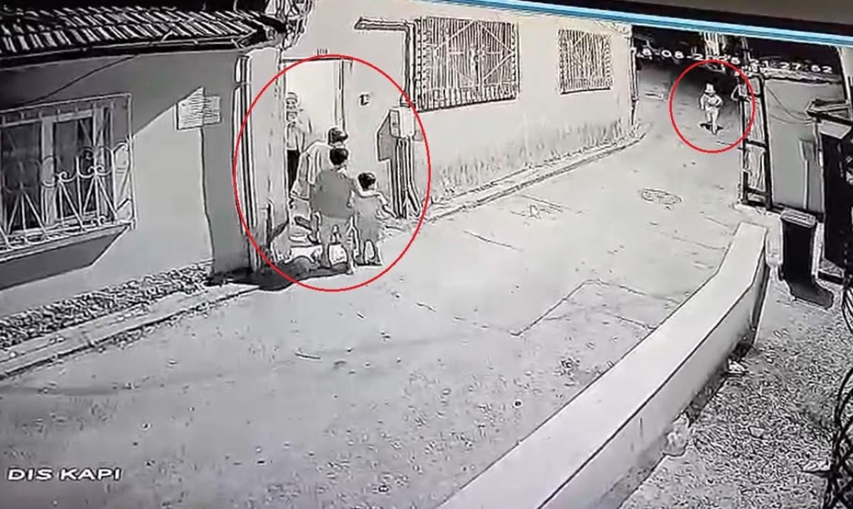 Güvenlik kamerasına da yansıyan görüntüde, sokağın başında palyaço kıyafetli şüphelinin görünmesiyle, 2 kadın ile 3 çocuğun eve kaçıp kapıyı kapattıkları görüldü.