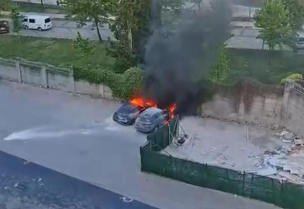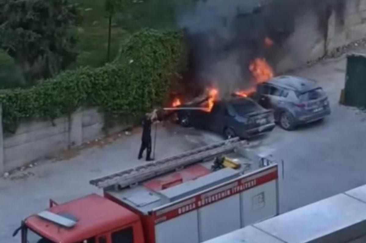 Bursa’nın Yıldırım ilçesi Mimarsinan Mahallesi’nde park halinde bulunan bir otomobil, henüz belirlenemeyen bir nedenle alev aldı. Kısa sürede büyüyen yangın, hemen yanında bulunan başka bir araca da sıçradı.