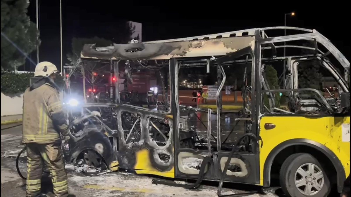 Bursa'nın Osmangazi ilçesi İstanbul Yolu Caddesi üzerinde park halinde bulunan belediye minibüsünde saat 22.30 sıralarında yangın çıktı.
