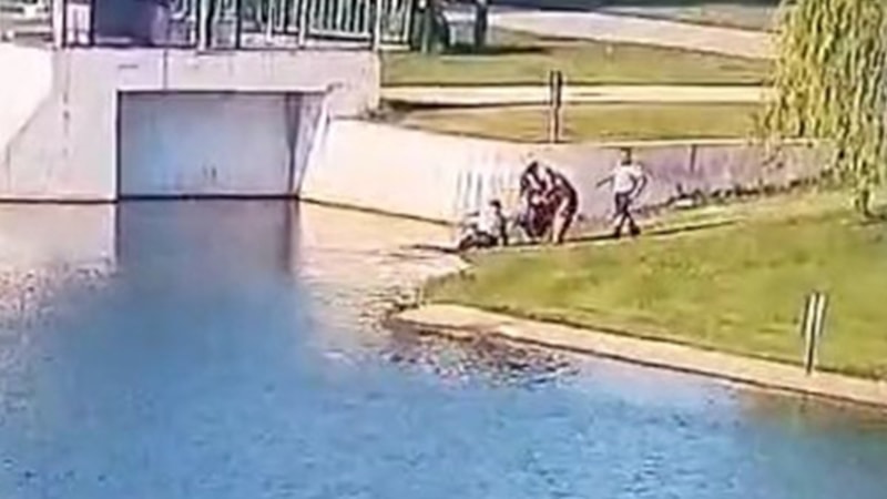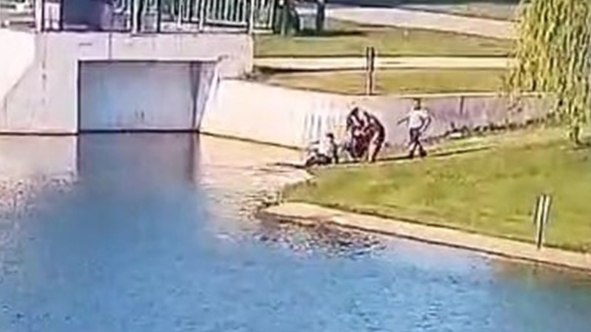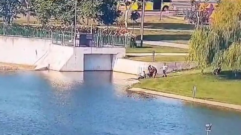 Bursa'da parkın içinden geçen çaya düşen küçük çocuğu suya atlayan özel güvenlik personelinin boğulmaktan kurtardığı anlar güvenlik kamerasına yansıdı.