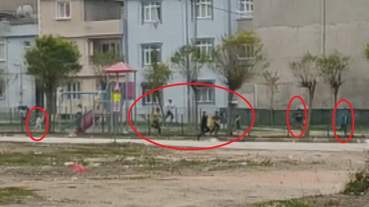 Çocuklar, kısa sürede gözden kayboldu. Çocukların parkta top oynadığı ve daha sonra polisten kaçtığı anlar ise cep telefonu kamerasıyla kaydedildi.