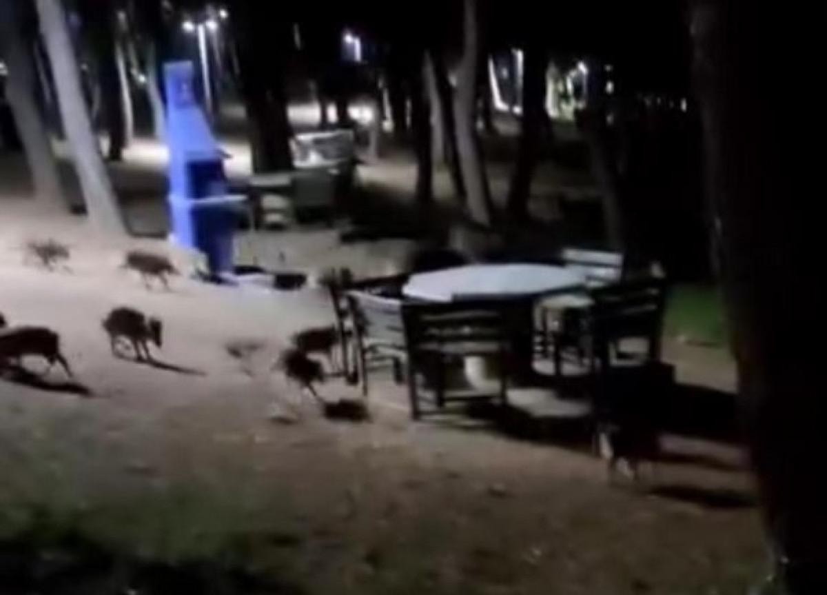 Kalabalık halde ilerleyen domuzlar kısa sürede gözden kaybolurken, o anlar çevrede bulunanlara şaşkınlık dolu anlar yaşattı.