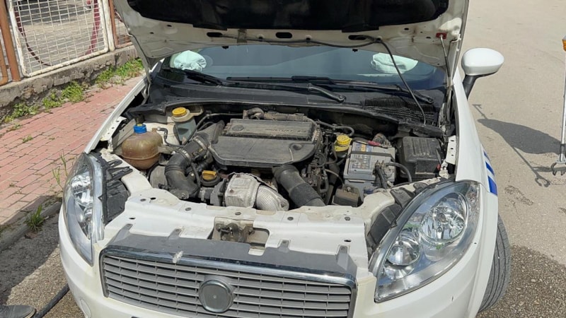 Bursa'nın İznik ilçe merkezinde görevli trafik ekibi, uygulama yaptığı sırada araçlarını yol kenarına park etti. Bu sırada otların arasından çıkan bir yılan aracın motor kısmından girmeye çalışırken polislerden biri yılanı fark etti.