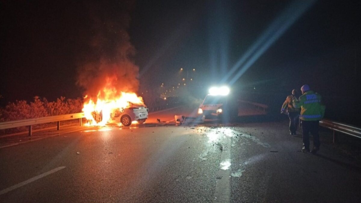 Üzerinde uyuşturucu madde bulunan Ferhat A. ise emniyete götürüldü. Alev topuna dönen araç itfaiye ekipleri tarafından söndürülürken Bursa-İzmir otoyolu ise kısa süreliğine trafiğe kapatıldı.