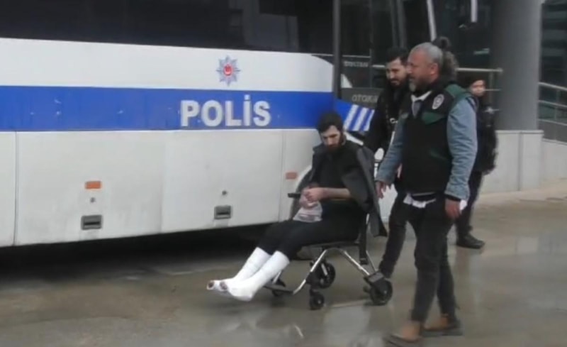 Polis tarafından yakalandıktan sonra hastanede iki ayağı birden alçıya alınan A.Z. (34) tekerlekli sandalye ile önce adliyeye, sonra cezaevine gönderildi.