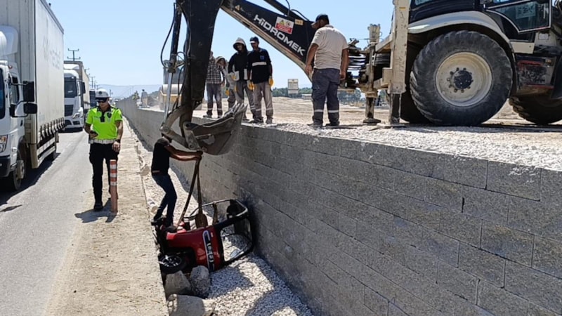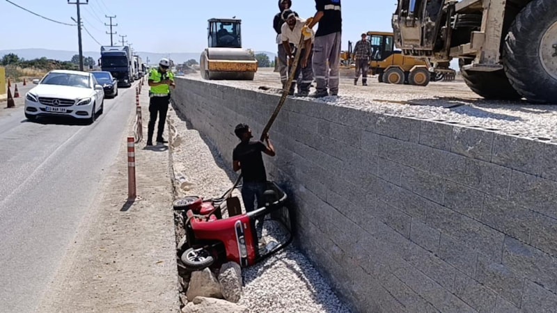 Bozüyük yönünden gelen Fatih Ö. idaresindeki 16 BTK 558 plakalı triportör, sürücüsünün kontrolü kaybetmesi sonucu yoldan çıkarak yaklaşık 2 metre yükseklikten köprülü kavşak inşaat alanına uçtu.