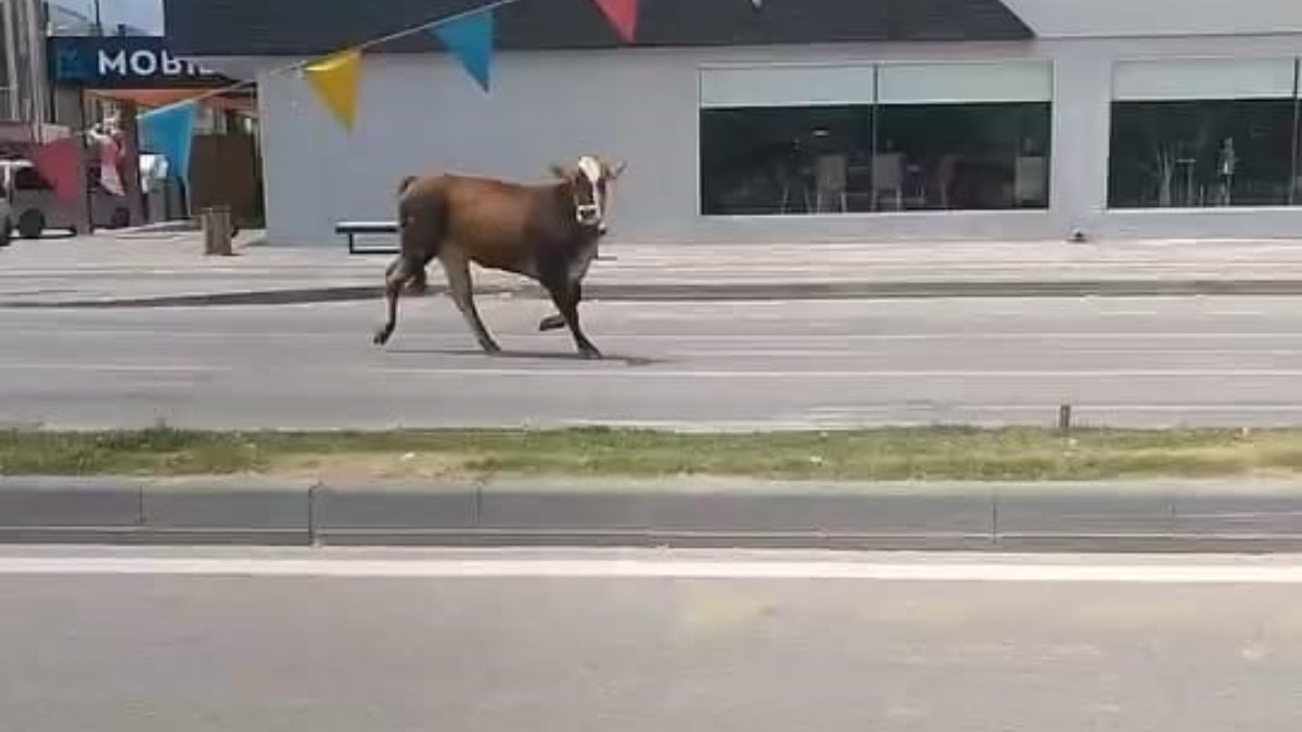 İnek kaçmaya devam ederken, o anlar çevredekiler tarafından cep telefonu ile saniye saniye görüntülendi.
