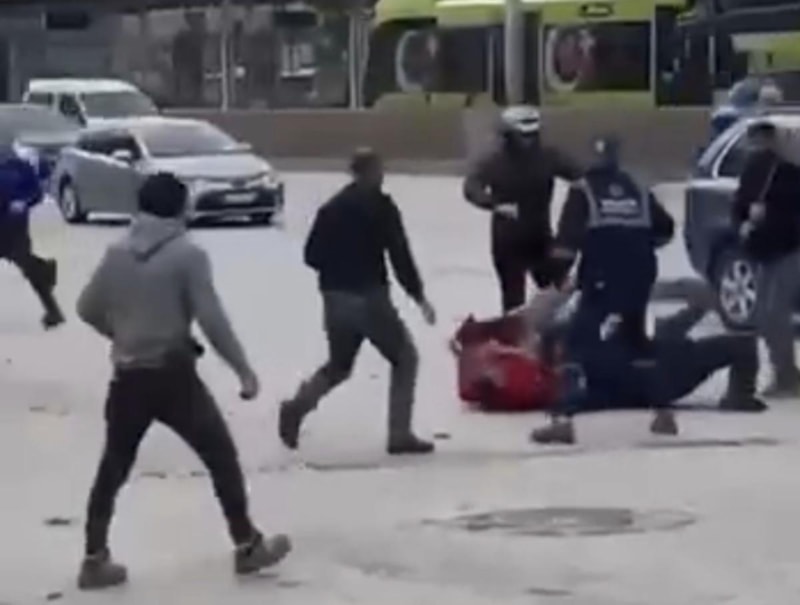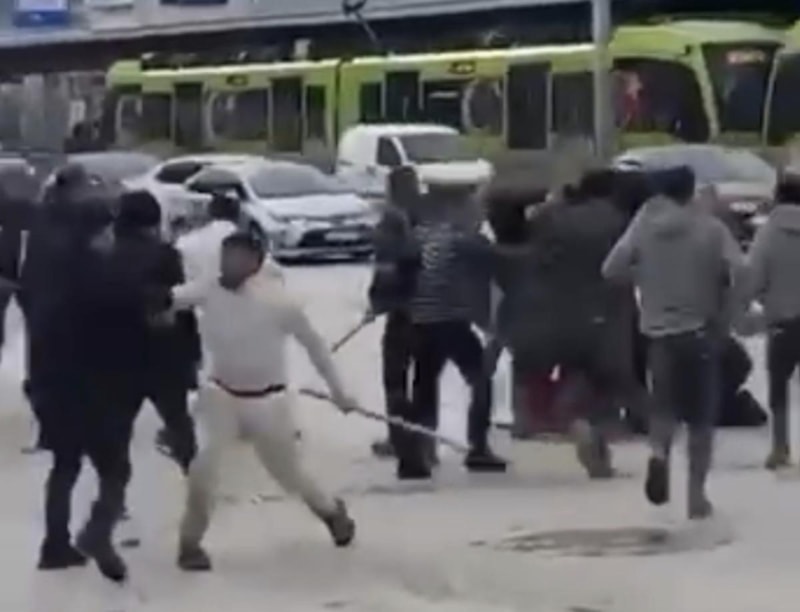 Osmangazi ilçesinde aralarında husumet bulunan iki grup, cadde üzerinde karşı karşıya gelince kavgaya tutuştu. Sopaların ve yumrukların havada uçuştuğu kavga anı kameraya yansırken bazıları, kendini korumak için kaskla kavgaya dahil oldu.