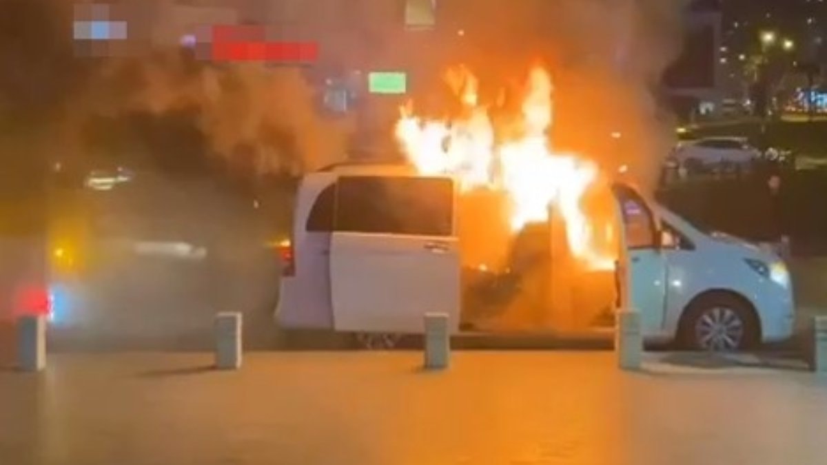 Minibüs kısa sürede alevler içinde kaldı
