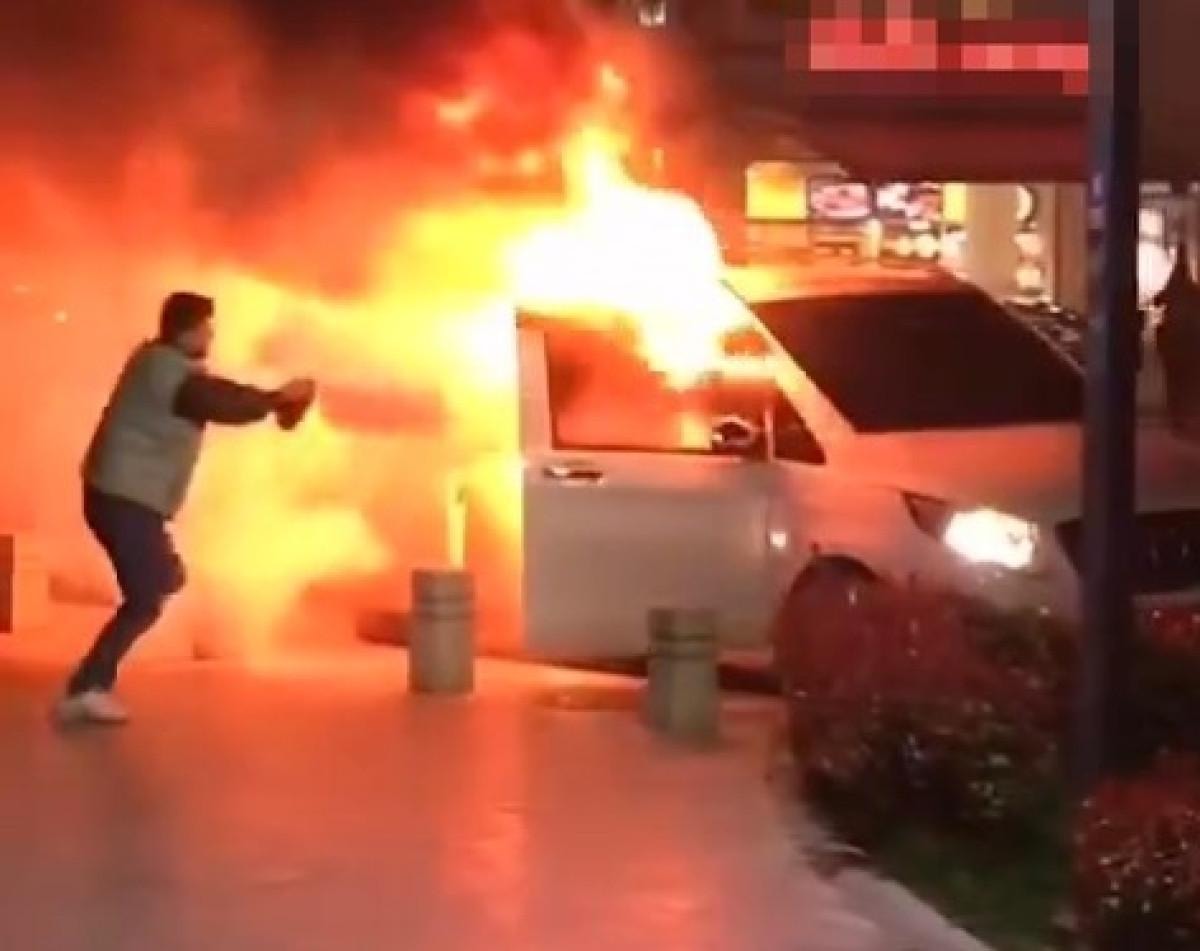 Bu arada araçta çıkan yangın, partililer tarafından kaydedildi. Görüntü alınırken bir anda alevlerin otomobili sardığı ve zaman zaman patlamaların meydana geldiği görüldü. Yaşanan patlamalar, çevrede bulunan partilileri de endişelendirdi. Yapılan ilk incelemede yangının elektrik kontağından çıktığı belirlenirken, olayla ilgili soruşturma sürüyor.