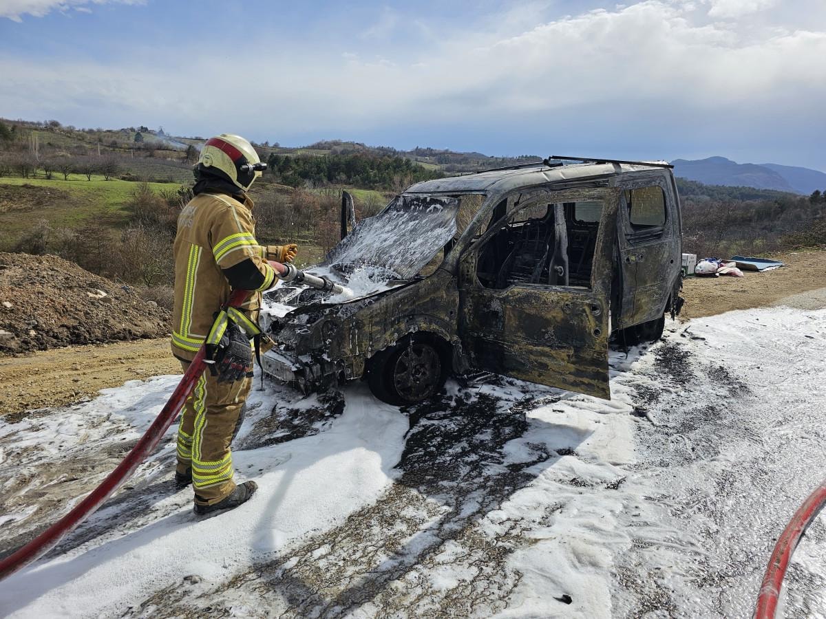 Aracın kullanılamaz hale geldiği yangınla ilgili inceleme başlatıldı.