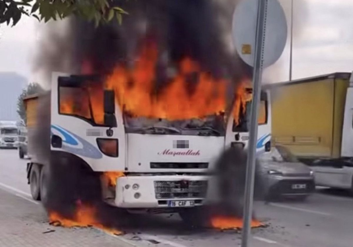 - Sürücü kamyonu emniyet şeridine çekip kendini dışarı attı; itfaiye ekipleri yangını kontrol altına aldı.