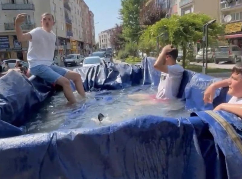 Sıcak havalardan bunalan gençler bu konuda ilginç bir çözüm buldu.