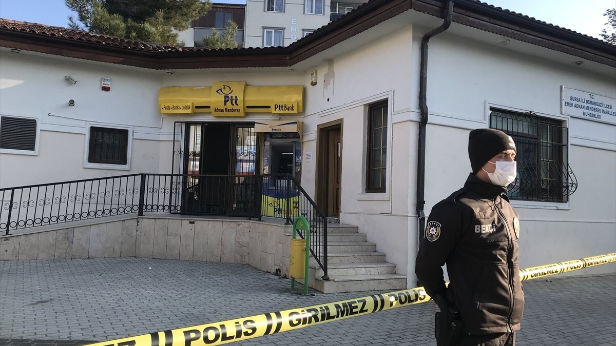 Bursa'nın Osmangazi ilçesi Adnan Menderes Mahallesi'ndeki bir PTT şubesine gelen henüz kimliği belirlenemeyen iki kişi, gişe görevlisine silah doğrultarak kasadaki paraları istedi.