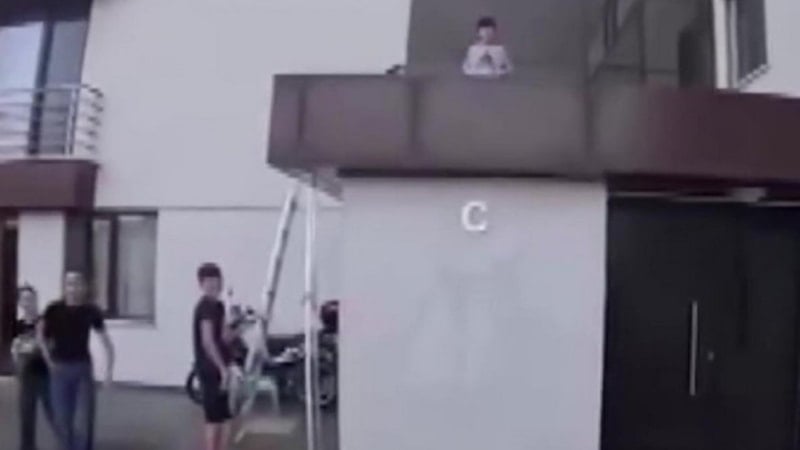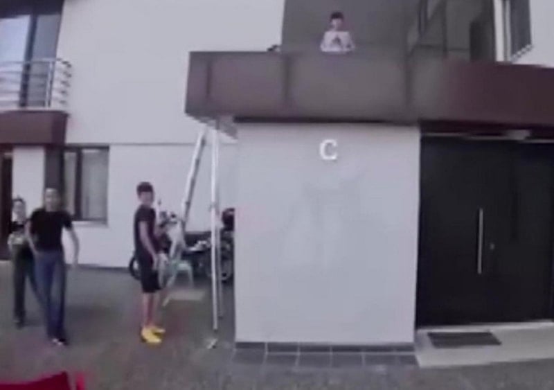 Sipariş teslim etmek üzere siteye giren kurye, giriş kapısının üzerindeki damda bir çocuğun mahsur kaldığını gördü. Çocuğun bir süredir aşağı inemediğini anlayan kurye, önce siparişini teslim etti, ardından duruma müdahale etmeye karar verdi.