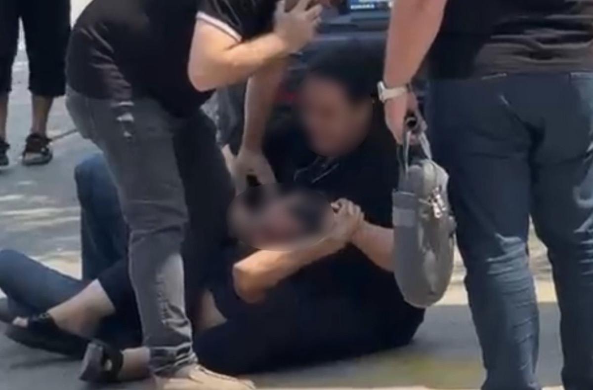 Eski kocasını cadde ortasında yakalayan kadın, dolandırıldığını öne sürerek darp etmeye başladı.