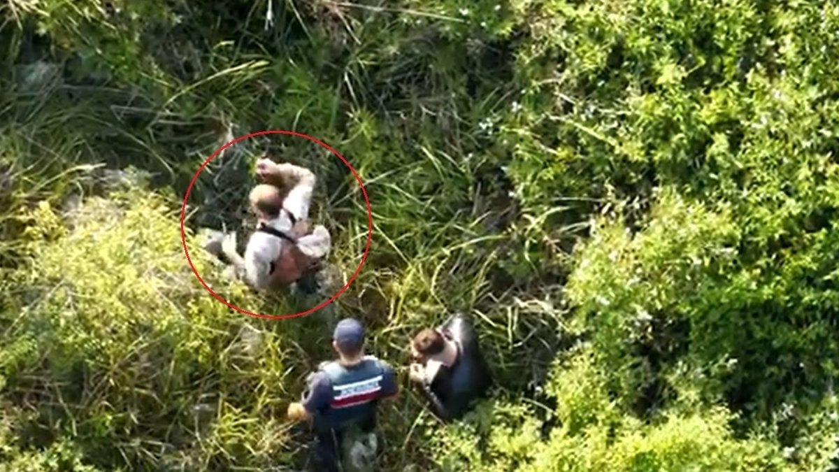 Arama-kurtarma çalışması dron kamerasıyla görüntülenirken, Kozan’ın sağlık durumunun iyi olduğu belirtildi.