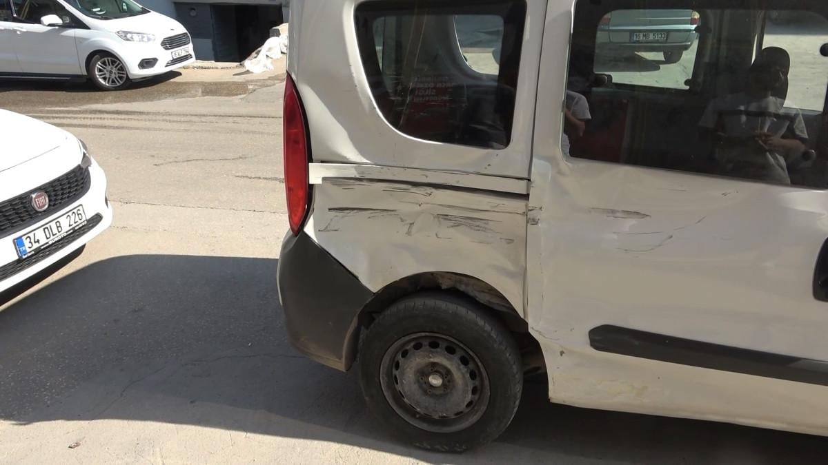 Kaza sonrası ticari araç, park halindeki başka bir araca çarparak zor durabildi.