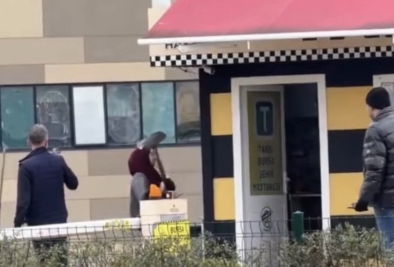 Nilüfer ilçesinde taksi durağında içinde yolcu dolu taksiye alınmadığı gerekçesiyle sinir krizi geçiren sağlıkçı bir kadın, camlar ve elektronik ekipmanlara zarar verdi. Olayda yaklaşık 150 bin liralık maddi hasar oluştu. O anlar kameraya yansırken kadını görenler şaşkınlık yaşadı.