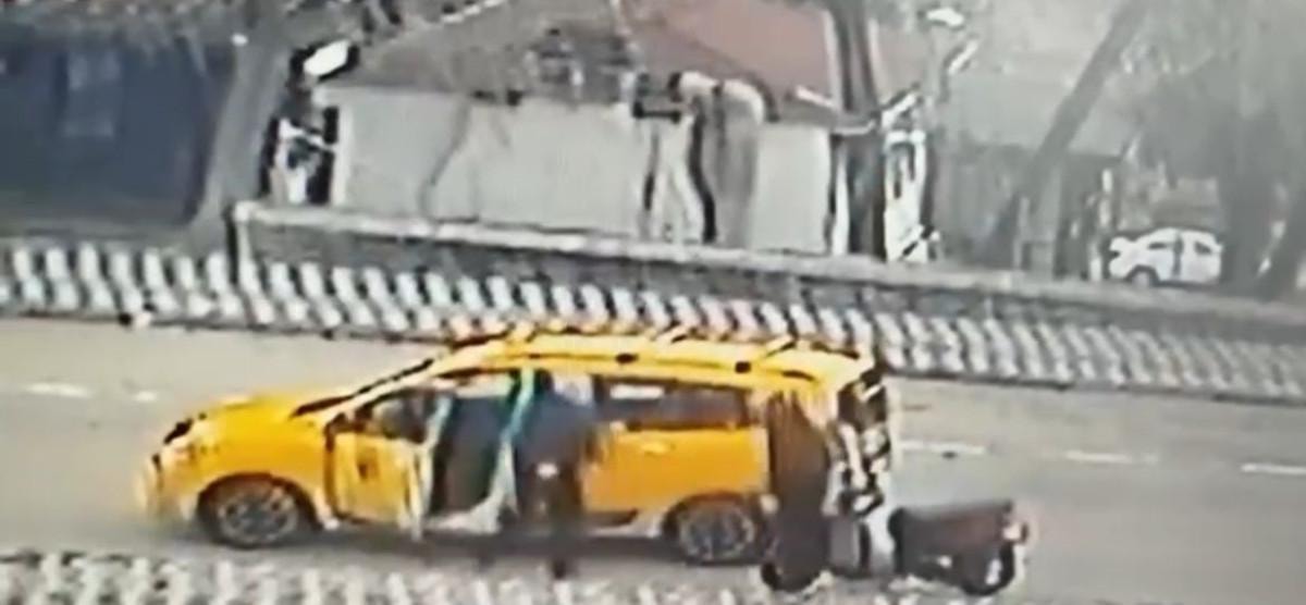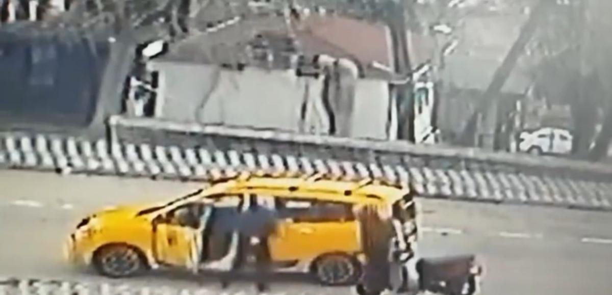İki sürücü arasındaki kavgayı, takside bulunan müşteri ayırdı.