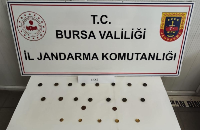Şüphelinin üzerinde yapılan aramada, Bizans ve Roma dönemlerine ait 17 adet bronz ve 5 adet altın sikke ele geçirildi.
