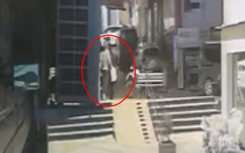 Olay anı, bir iş yerinin güvenlik kamerasıyla görüntülendi.