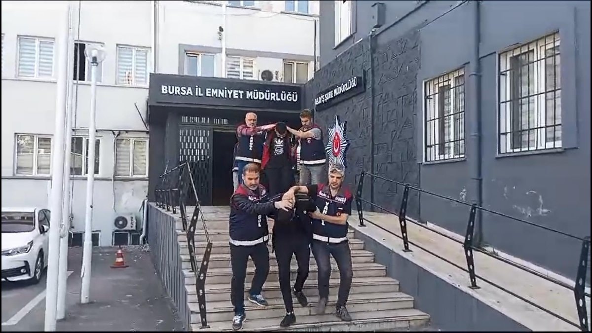 Baskında yakalanarak gözaltına alınan Enes Çağrı Ç., Mustafa B. ve Doğan Fatih S., sorgulanmak üzere Bursa'ya getirildi.