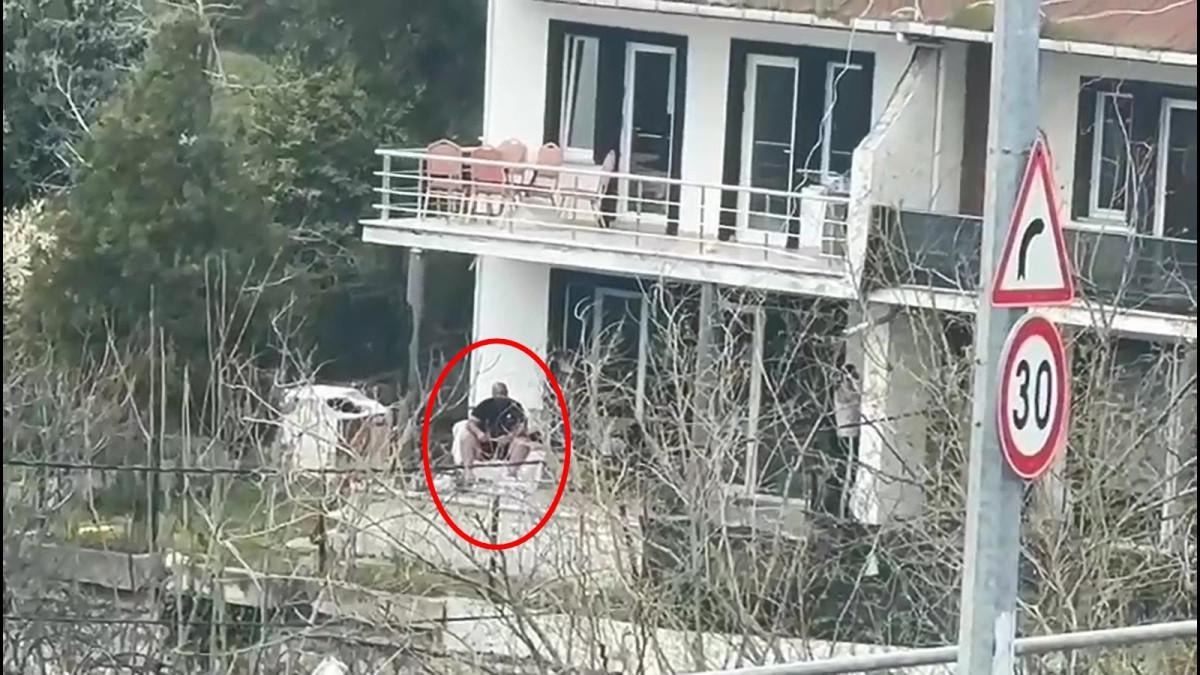 Dolandırıcıları tutulanları villanın balkonunda görüntüleyen polis, adrese operasyon düzenledi.