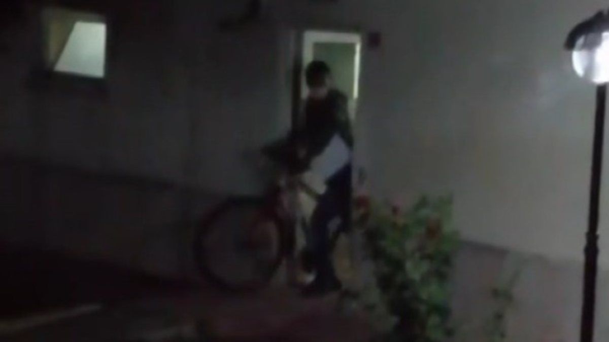 Gece yarısı bir sitenin duvarından atlayan kimliği belirsiz bir kişi, sitenin depo kısmından bisikleti çaldı.