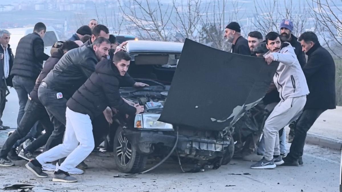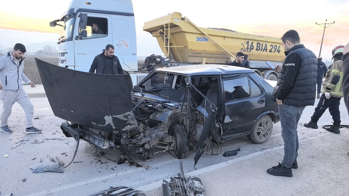 Bursa'nın İnegöl ilçesi Alanyurt ile Akhisar mahallelerini birbirine bağlayan yolda Mehmet Veysi A. (28) yönetimindeki otomobil, sürücüsünün kontrolünden çıkarak şerit ihlali yapınca karşı yönden gelen Talha T. (53) yönetimindeki kamyon ile kafa kafaya çarpıştı.