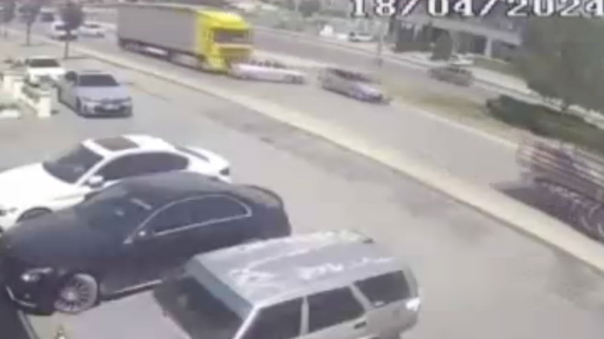 Sürücünün sağlık durumunun iyi olduğu öğrenilirken, yaşanan kaza anı bir iş yerinin güvenlik kamerasına saniye saniye yansıdı.