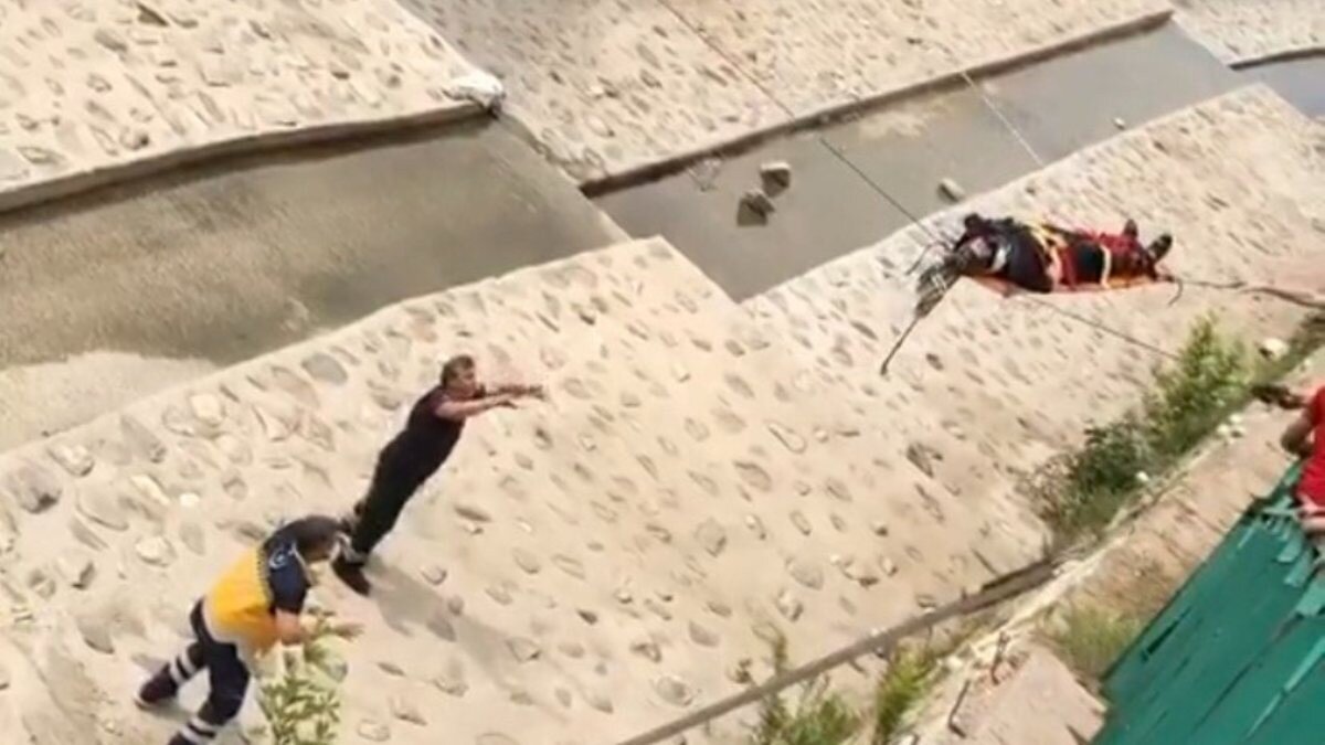 Çocuğunun dereye kaçan topunu almak için mücadele eden kadın 10 metre yükseklikteki duvardan dereye düştü.
