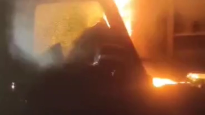O sırada cip alev alırken vatandaşlar, sürücü Y.F.E.'yi uzun süren uğraşların sonucunda sıkıştığı yerden kurtardı.