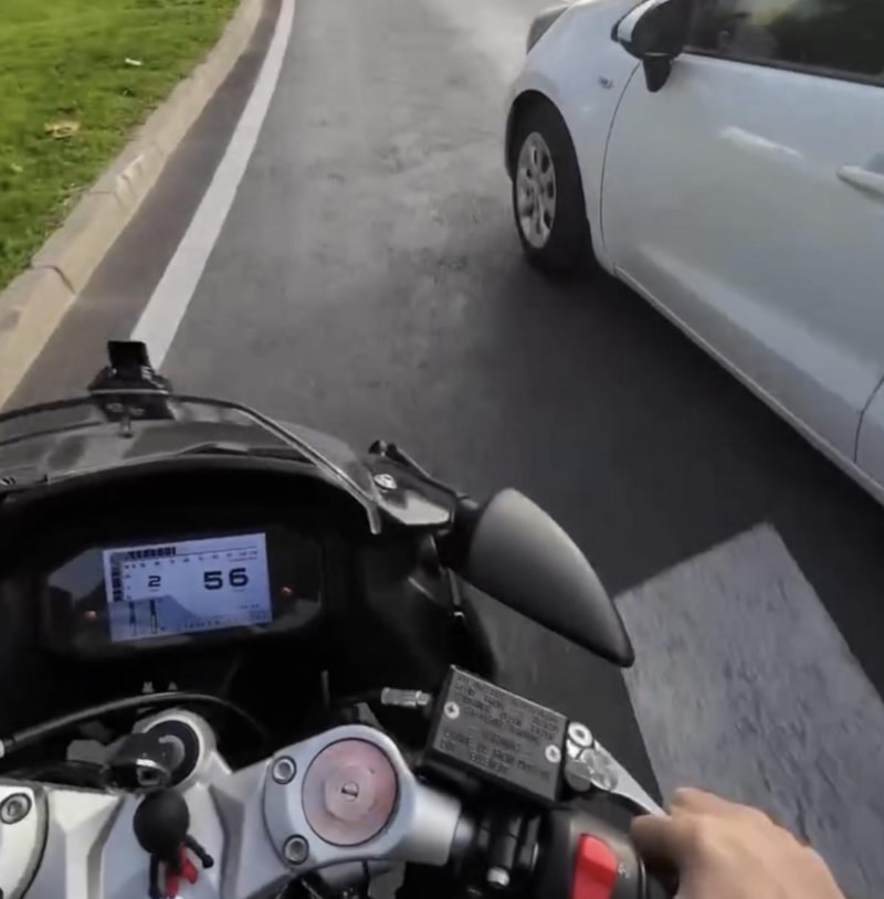 O anlar kameraya yansırken, motosikletli o anları, "Hak edene, hak ettiğini vereceksin" notuyla paylaştı.