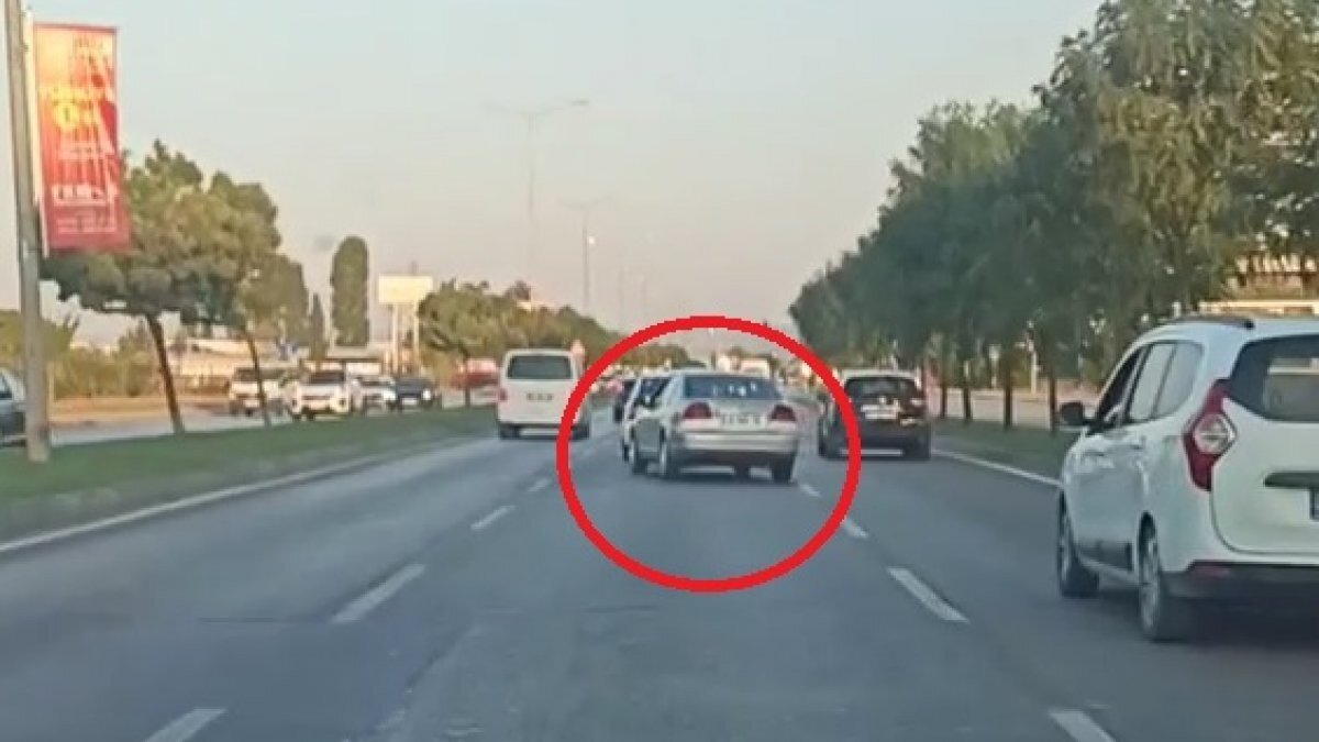 Bursa'nın Yıldırım ilçesine bağlı Millet Mahallesi’ndeki çevre yolunda, bir otomobilin yüksek hızla diğer araçlara makas atarak ilerlemesi, trafikte tedirginlik yarattı.