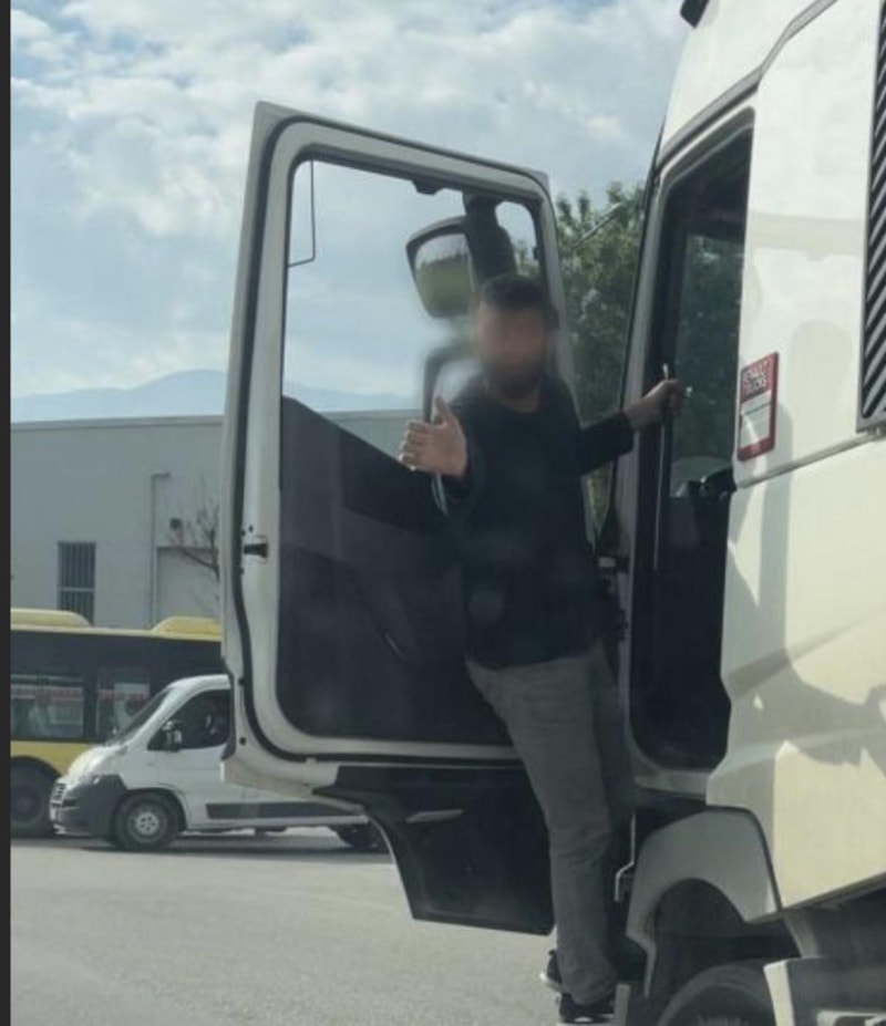 Kavşak üzerinde hızla ilerleyen tırın kendisini sıkıştırmasına tepki gösteren otomobil sürücüsü, "Sen katil misin? Nasıl bir hızla ilerliyorsun?" sözlerini sarf etti. O anlar cep telefonu kamerasıyla kayda alındı.