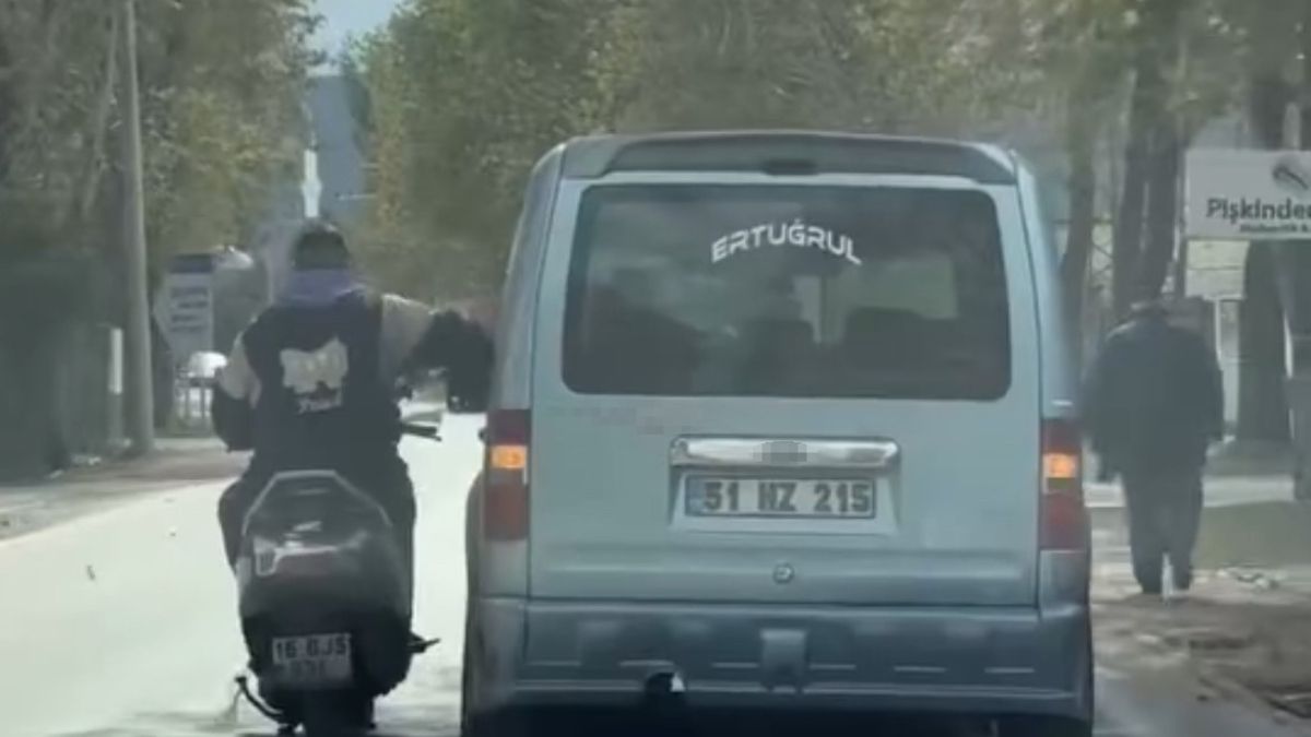 Trafiği ve kendi canını hiçe sayan sürücülerin bu tehlikeli yolculuğu, cep telefonu kamerasıyla anbean kaydedildi.