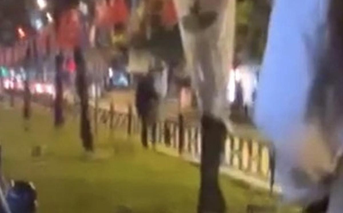 Bursa'nın Osmangazi ilçesinde, şüpheli bir şahıs, cadde üzerinde orta refüjde bulunan Türk bayrağını yakmaya çalıştı.