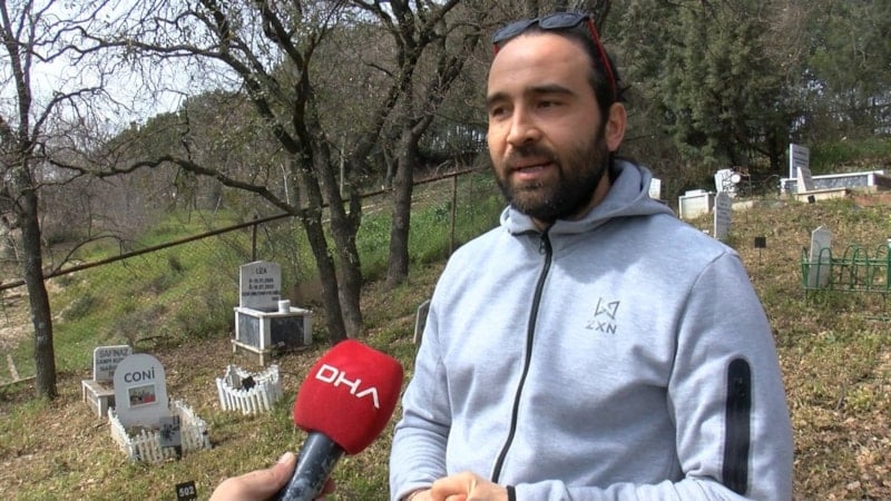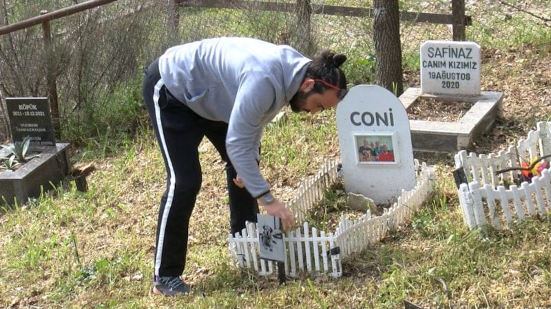 'Coni' isimli köpeğini geçen yaz kaybeden Barış Can Kalan, "Bayramda bizim ailemizin ferdi olan 'Coni'yi ziyaret etmeye geldim. Hem de lodos, yağmur ve kardan sonra mezarını kontrol etmek istedim.