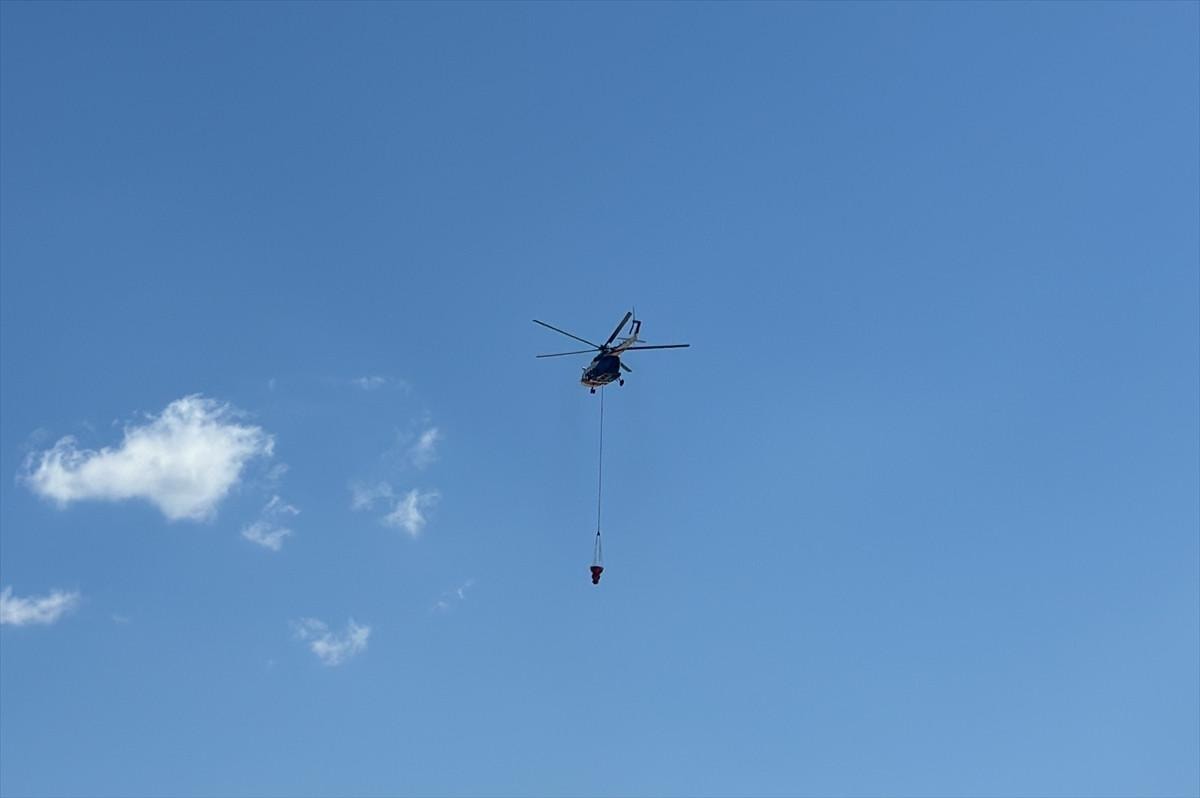 Çıkış sebebi henüz belirlenemeyen yangına zorlu arazi şartlarında ulaşan ekiplerin soğutma çamışmaları sürüyor.