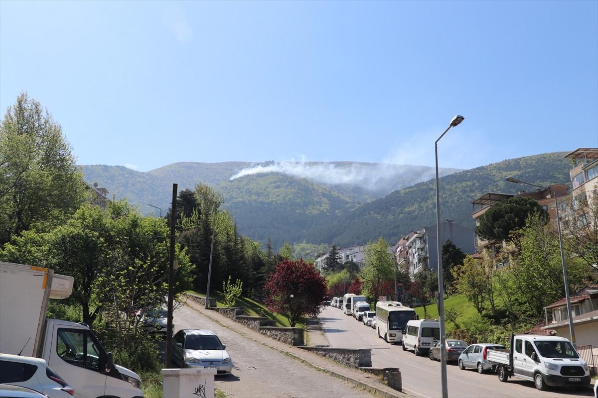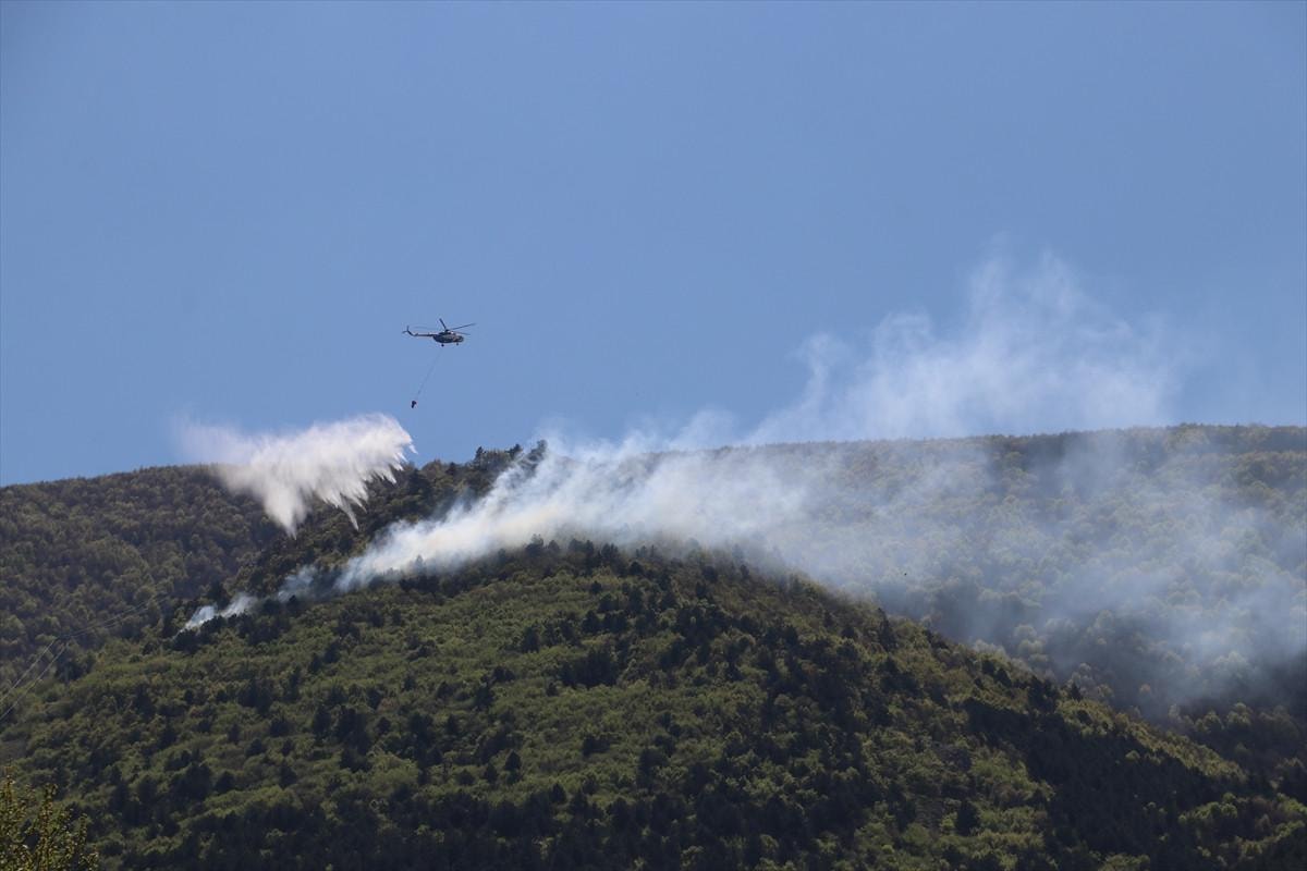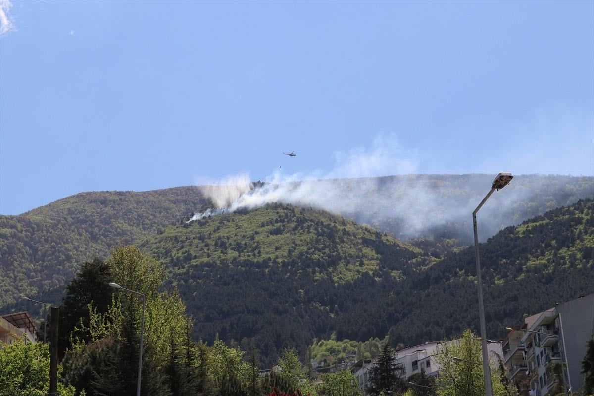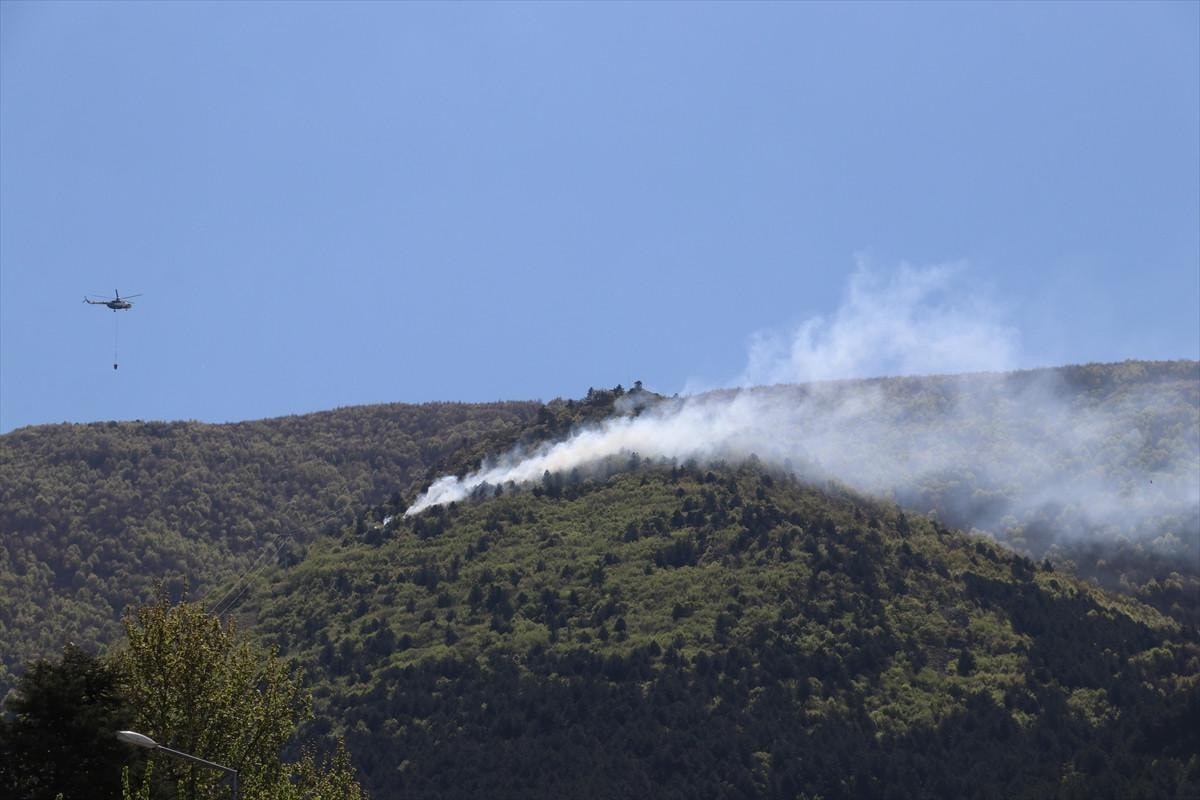 Bursa İl Jandarma Komutanlığı helikopterinin desteğiyle kontrol altına alınan yangında soğutma çalışmaları sürüyor.
