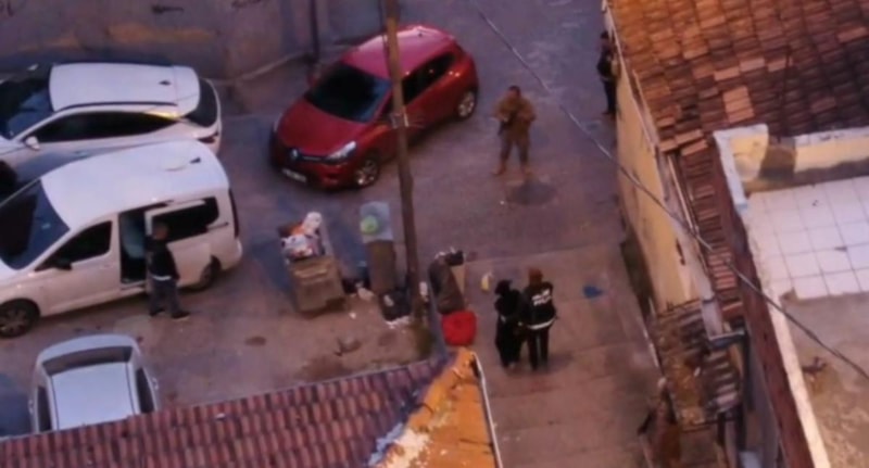 İfadesi alınmak üzere emniyete götürülen şüphelilerin emniyetteki işlemleri devam ederken, operasyonda nefes kesen anlar ise kameraya anbean yansıdı.