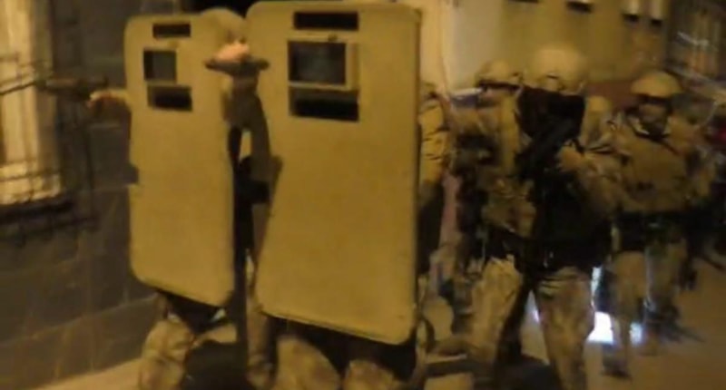 Şafak vakti yürütülen operasyonda, kapılar koçbaşlarıyla kırıldı.